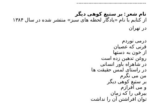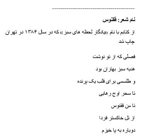 از کتابم با نام "هرم" که که در سال ۱۸۴ در تهران چاپ شد