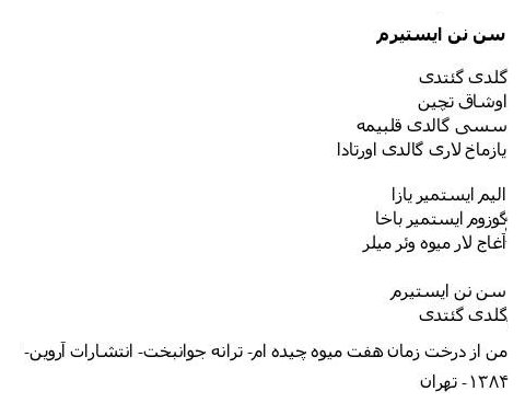 Copyright © by Taraneh Javanbakht All Right Reserved. Published on: 2005-11-13 (5523 reads) [ Go Back ] |